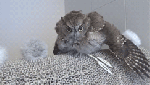 フクロウのクウちゃん、水浴びから乾燥まで / Screech Owl having a bath and then being dried.