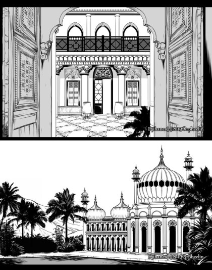- Backgrounds panels for my Djihanes comic. I used photo references for the basis. I’m using and abusing of brushes, symetry and perspective tools in PS X’O, but I’m happy with this technical 😀 I save a lot of time !