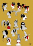 Maya women hairstyles and headwear in the Classic period (c.600-900). Based on primary sources: vase paintings, murals, ceramics, figurines, bone carvings, stelae etc.
