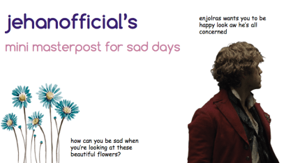 answer questions and give people rice // make a giant squid pillow // make your own interactive acapella band // a livestream of the ocean // go to a cool place // calming sand generator // click to give food to an animal shelter // make a flower crown // language learning masterpost // personality tests // which les mis character are you? // see what it’s like to live on minimum wage // make glitter from salt // check your post limit // make a wand // make a gif // make your handwriting into a font // get an emergency compliment // daily puppy // coping skills masterpost // go on a stickman adventure // make a comfort box // make some music // colour identification game // 100 beautiful and ugly words // read any book // baking cakes for beginners // relaxing and calming sounds