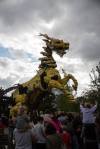 Behold the awesomeness that is Long Ma the fire-breathing dragon-horse, the latest creation by French artist François Delarozière and his art production company La Machine. The 46-ton kinetic sculpture stands almost 40 feet tall and features articulated limbs that can gallop, rear up, and fold beneath him when he wants to sit down. His neck rises and falls and his wonderfully expressive face features eyes that open and close. Best of all, his chest swells from the pressure building in his lungs before he exhales fantastic plumes of smoke from his nostrils and jets of fire from his mouth.