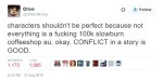 - The author should understand when something a character does is problematic and deliberately writes it that way.
