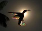 Natural phenomenon of diffraction of light transforms black hummingbird’s wings into tiny rainbows
