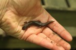The seeps and headwaters that feed Appalachia’s rivers and streams, such as Scott Run in Coopers Rock State Forest (above), are key to the local ecosystem’s ability to absorb, hold, and distribute water, control flooding, and maintain high quality habitat for the region’s incredible biodiversity. These source waters are the most vulnerable hydrologic features of the mountains, the first to be adversely impacted by mining and deforestation. Despite Appalachia’s long struggle with devastating flooding and degraded water quality, work is underway in many parts of the region to restore previously-impaired lands and headwaters. That’s good news for this chubby Allegheny Mountain Dusky Salamander (bottom photo), which this past Saturday was busy with spring mating duties in one of the headwaters of Scott Run.