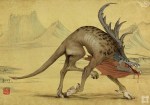 Description: 状如牛,四角,其豪如披蓑,是食有