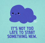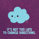 Drawing of a pink cloud with a caption that says “It’s not too late to ask for help.” in pink against a blue background. Drawing of a blue cloud with a caption that says “It’s not too late to change directions.” in blue on a purple background. Drawing of a blue cloud above a blue caption that says “It’s not too late to let go of something that’s bad for you.” in blue text on a dark blue background. Drawing of a blue cloud with a caption that says “It’s not too late to start something new.” in blue text on a light blue background. -