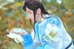 Coser小梦 (read about him here) is wearing a white Yuanlingpao/圆领袍 (round-collar robe) from