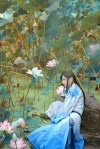重回汉唐. He hand-painted the blue lotus flower design (and the fan) himself! (Source)